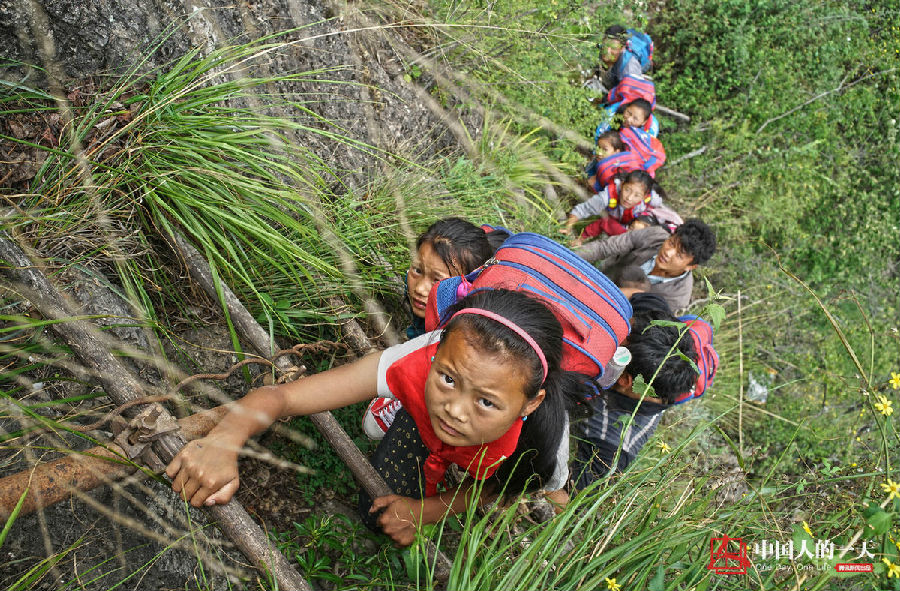 讀書時(shí)每個(gè)孩子必須經(jīng)歷的途徑,而位于四川涼山這個(gè)地界彝族自治州昭覺(jué)縣支爾莫鄉(xiāng)阿土勒爾村,有很多兒童卻因?yàn)榄h(huán)境影響不能正常讀書,而讀書之路要經(jīng)過(guò)攀爬近一百米的懸崖才能走出大山,這個(gè)村莊每天都有人因?yàn)榕郎蠎已露鶕?jù)當(dāng)?shù)卮辶私獾竭@條懸崖已經(jīng)有七八個(gè)人被摔傷了,而更讓人擔(dān)心的是每個(gè)月上學(xué)讀書的孩子們、每次上學(xué)下山時(shí)都會(huì)給讓三個(gè)成人陪同十五個(gè)孩子一起爬懸崖讀書,通常下山需要一個(gè)小時(shí),上山需要一個(gè)半小時(shí),而外來(lái)人員則需要這個(gè)時(shí)間的一倍左右,這也讓村里年齡小一點(diǎn)的沒(méi)有去讀書的原因。