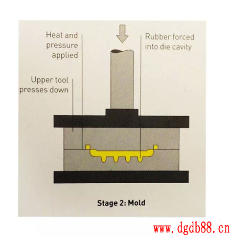 步驟2:加熱模具至180°后,上下兩片模具合并,膠狀的硅膠小條在高溫和壓力下,緊貼模具內壁表面成型,100秒后成型完畢