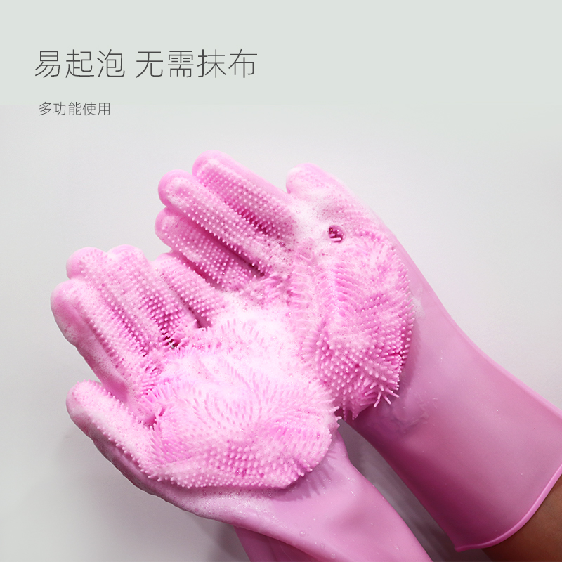 硅膠清潔手套,生活日用品,掌心毛刷可清潔多種物品,柔軟耐磨可清洗不同產品上的殘留物,長筒手套可清理很大更深的臟污,加厚耐磨設計,使用壽命良好,可長期接觸油污液體不發生任何壽命變化,可在高低溫情況下正常使用。