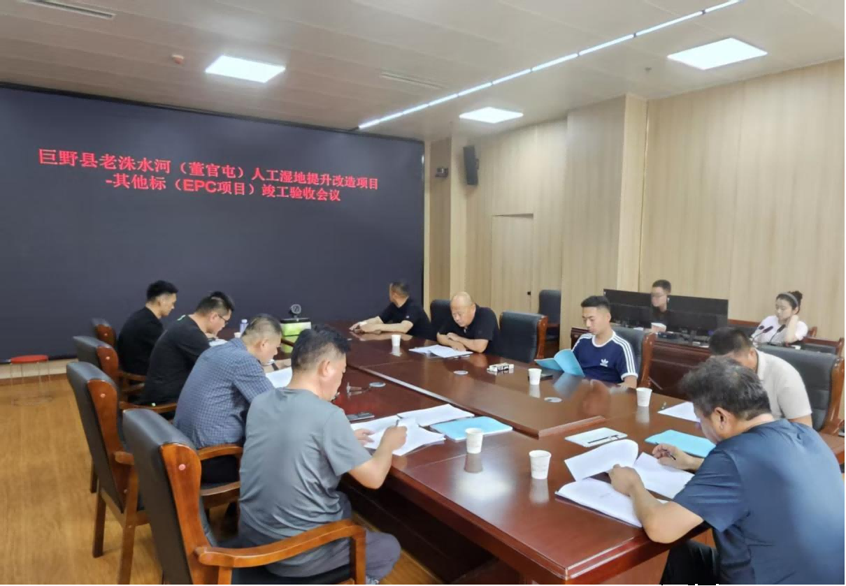 近日,集團(tuán)公司承建的巨野縣老洙水河(董官屯)人工濕地提升改造工程-其他標(biāo)(EPC項(xiàng)目)竣工驗(yàn)收會(huì)議在巨野縣水務(wù)局會(huì)議室成功召開。本次驗(yàn)收由巨野縣水務(wù)局組織,專家組由巨野縣水利工程服務(wù)中心、山東水工建設(shè)科技咨詢有限公司、山東省水利勘測(cè)設(shè)計(jì)院有限公司、中鴻億博集團(tuán)有限公司、山東大禹水務(wù)建設(shè)集團(tuán)有限公司、巨野縣昌源水務(wù)有限公司、巨野縣水利工程質(zhì)量與安全監(jiān)督站等單位的代表及特邀專家組成。