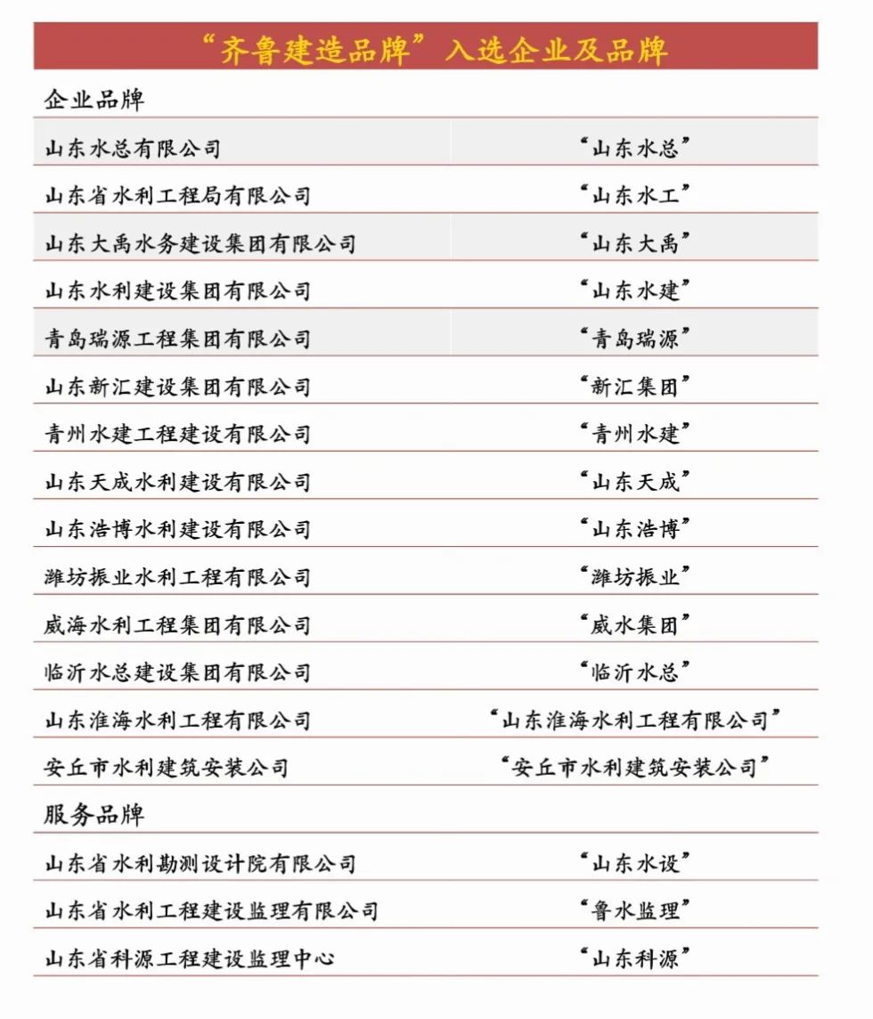 近日,山東省住房和城鄉(xiāng)建設(shè)廳正式發(fā)布《關(guān)于公布山東省建筑業(yè)2025年第一批“齊魯建造”品牌的通知》(魯建辦字〔2025〕4號)。經(jīng)嚴(yán)格評審,山東省水利行業(yè)共有17家優(yōu)秀企業(yè)光榮入選“齊魯建造”品牌榜單,其中山東省水利勘測設(shè)計院有限公司所屬的“山東水設(shè)”“山東大禹”“魯水監(jiān)理”品牌成功入選。