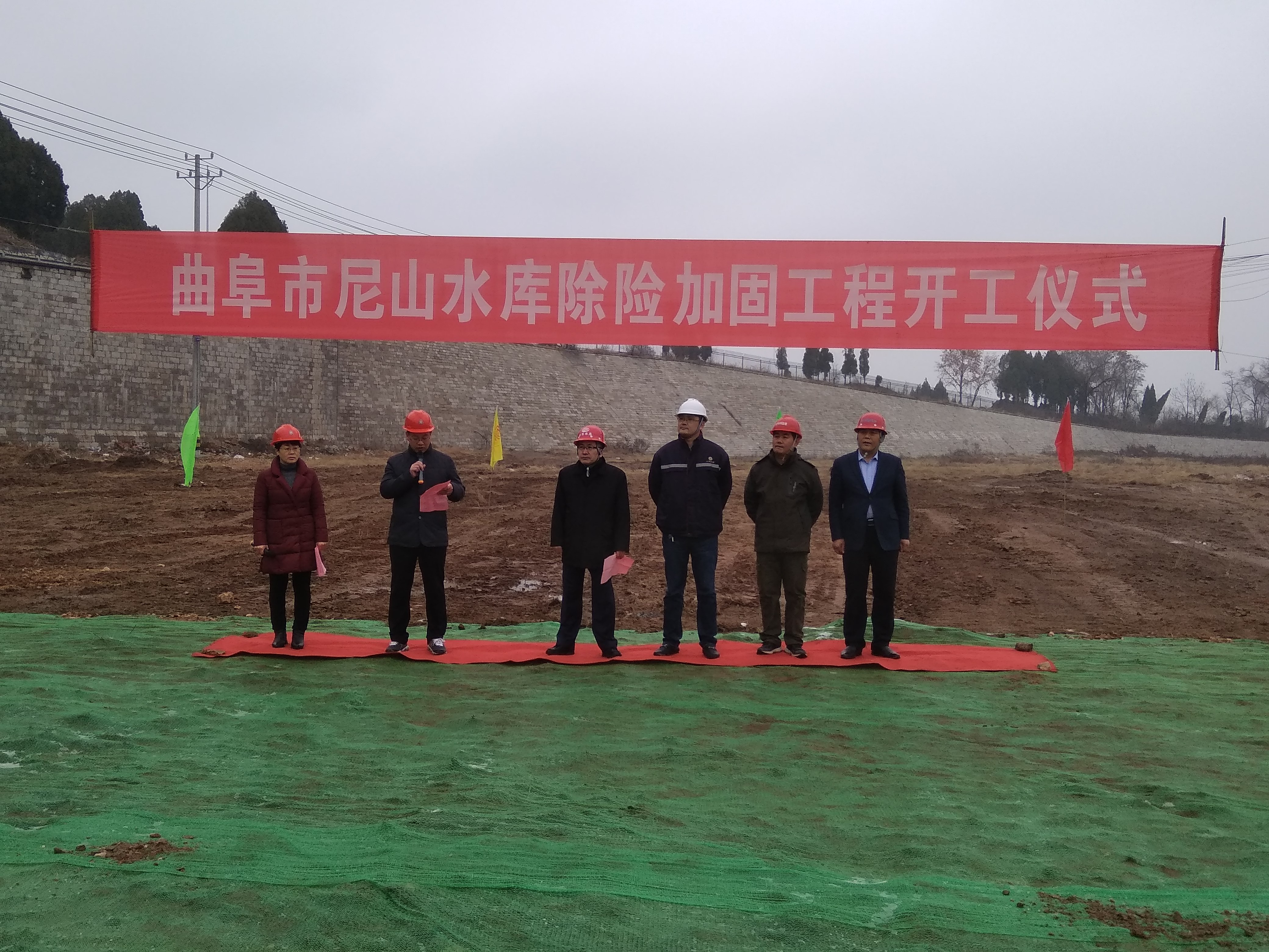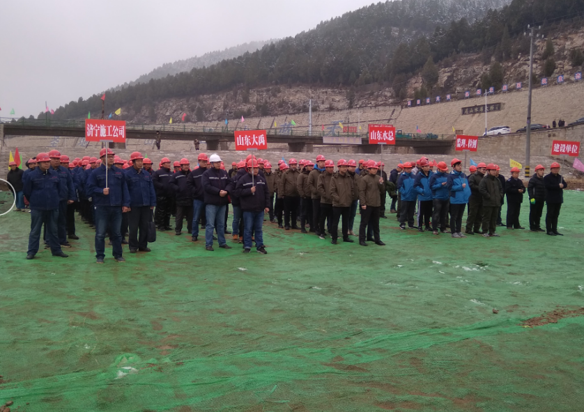 2018年12月6日大禹公司總經理張玉源、副總經理馬永收帶領項目部人員在尼山腳下、圣水湖(尼山水庫)畔參加了曲阜市尼山水庫除險加固工程開工儀式,開工儀式由曲阜市尼山水庫管理局組織,建設、監理、檢測、施工等單位參加。尼山水庫管理局局長孔令泉在開工儀式上作了熱情洋溢的致辭,監理單位、施工單位代表分別做了表態發言。